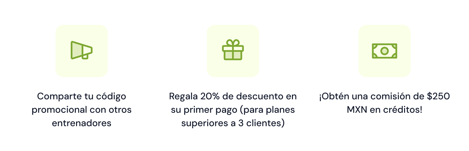 ¿Eres parte de la comunidad Feast Fit? Ahora puedes ayudar a más entrenadores a transformar su negocio mientras ganas recompensas: Regístrate en el programa de referidos, comparte tu código con otros entrenadores, y gana $250 MXN en créditos por cada persona que se una. La persona que invites obtiene un 20% de descuento en su primer pago.